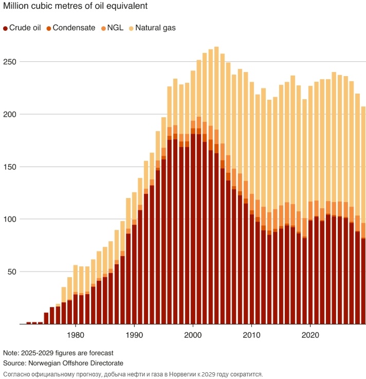 Добыча газа в Норвегии в 2025 году будет меньше рекордного 2024 года
