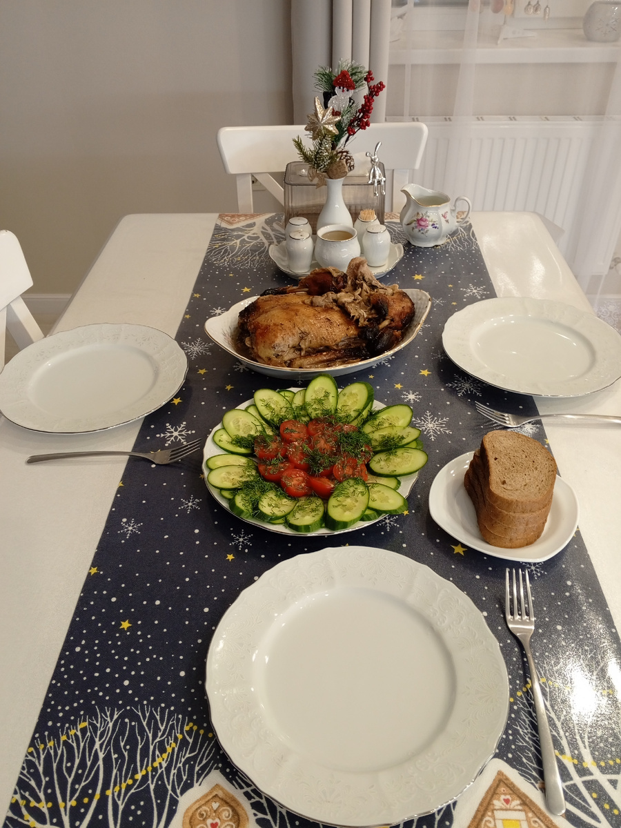 07.01.2025 Еще раз всех приветствую, всем рада! Погода подарила нам очередной чудесный, солнечный, тёплый день. На солнце было +15. Мы люди не воцерковленные, но дань традиции отдали. Как мне однажды сказал умный человек, что неверующих людей нет, просто каждый верит во что-то своё. Никаких салатиков мы в этот раз не готовили. Я запекала утку в рукаве, она получилась как никогда вкусно, наверное, потому что мариновалась сутки. Маринад делала так: много горчицы, мед, соевый соус, розмарин сухой, можно и без него. Запекала около трех часов при 150 градусах. Подавала со свежими овощами. После обеда сходили прогулялись, заодно в WB зашли. Забрала контейнеры. Как хорошо продумано, что в наборе две крышки. Теперь можно запасаться домашними полуфабрикатами больше. Василиса заценила коробочку от контейнеров, наигралась с ней вволю. Уж она в ней и вертелась, и терлась, и на зуб пробовала. Любят они коробки и пакеты. После улицы, меня разморило на солнышке, плюс накопительный эффект от таблет