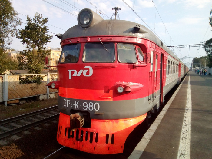 Этой ночью мне не спалось. Я честно хотел вернуться обратно в режим к четвергу малой кровью - лечь спать в полночь. Но не получилось - поворочавшись пару часов, я вернулся обратно за комп и начал читать всякое... Хотя, что я начинаю нудеть так, что даже благодарный читатель захочет открыть форточку - перейду сразу к интересному: я узнал что от Балтийского вокзала в Ораниенбаум утром проследует ретропоезд "Лахта" (Электричка ЭР2К-980) А вот таким он предстал передо мной сегодня утром (эта собачка в таком виде давно, но встретить её не удавалось) За качество строго не судите - Чукча не блогер, но Чукча старается) Всё время, пока осуществлялась посадка, машинист рассказывал о поезде, и очень просил любителей истории не разбирать электричку на сувениры Собачка оказалась довольно аутентичная с деревянными сиденьями и установками для перевозки лыж, довольно музейной - вагоны изобилуют фотографиями и плакатами времён эксплуатации, но и не лишённой современных удобств в виде комфортных туалето