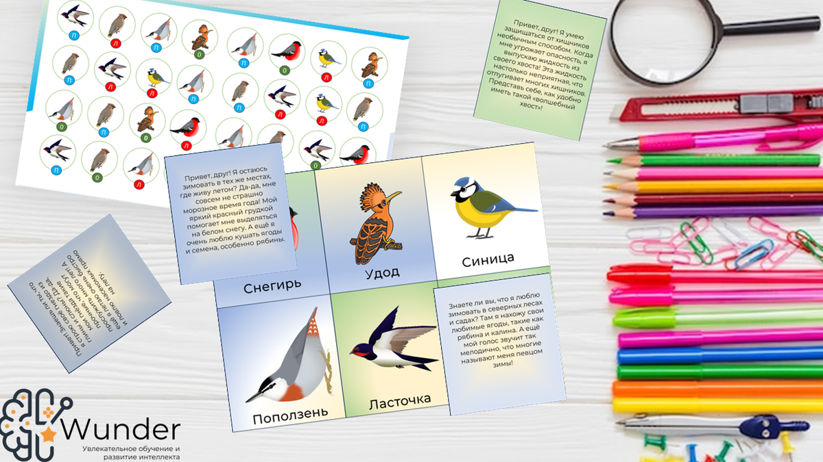 Разрабатывая новые игры, моя цель состоит в том, чтобы дети не просто получали знания, но и активно развивались, приобретая ключевые навыки для успешного обучения и личностного роста. Научные исследования подтверждают, что информация усваивается намного эффективнее, когда она вызывает эмоциональную реакцию. Поэтому я стараюсь создавать такие игровые сценарии, которые не только обучают, но и вдохновляют, вызывая у детей радость, удивление и желание узнать больше. Представляю вашему вниманию новое упражнение, которое обладает множеством полезных эффектов с точки зрения нейропсихологии. Рассмотрим подробнее, какие аспекты развития затрагивает данное занятие: 1. Развитие памяти Занятие требует от ребенка запоминания названий птиц, их внешнего вида и ассоциаций с ними. Это стимулирует работу кратковременной и долговременной памяти, улучшает способность к удерживанию информации и её воспроизведению. 2. Формирование межполушарных связей Нейроупражнение, связанное с поднятием рук в зависим