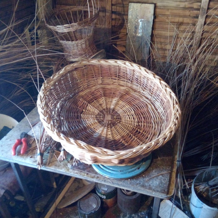 Здравствуйте. С новым годом. Всем, всего. Сегодня у меня в гостях, в роли наблюдателя, Степан Александрович. Думаю, он внесёт свои коррективы. Время работы 6 часов. Загибка на фанерном донышке. Покупка готовых донышек, не всегда рентабельна. Но, в безвыходных ситуациях, уместна. Для « тренировок» можно сделать самостоятельно, из любых подручных материалов–обрезков: двп, фанеры, доски ламината, пластика и т.д.. Возможно найдутся знакомые, которые помогут, либо рядом есть мебельные производства, столярки. На обрезок фанеры ставлю любую банку, обвожу. (Кто-то уже разрисовал её. Этот кто-то, уже третий лист на свои мечи, снайперки переводит. Оружейный барон, блин.) Добавляю 5 -6 мм., рисую наружний круг. Можете использовать циркуль. Выпиливаем неровно, но быстро. По внутреннему кругу, контуру шаблона будут отверстия. На торце донышка примеряю (!) прутик, под будущую боковую загибку. Примерно 1, 5 см.. То есть, делаю донышко под себя. Прутики диаметром 3, 5-4 мм, толстые. Чем это грозит, ув