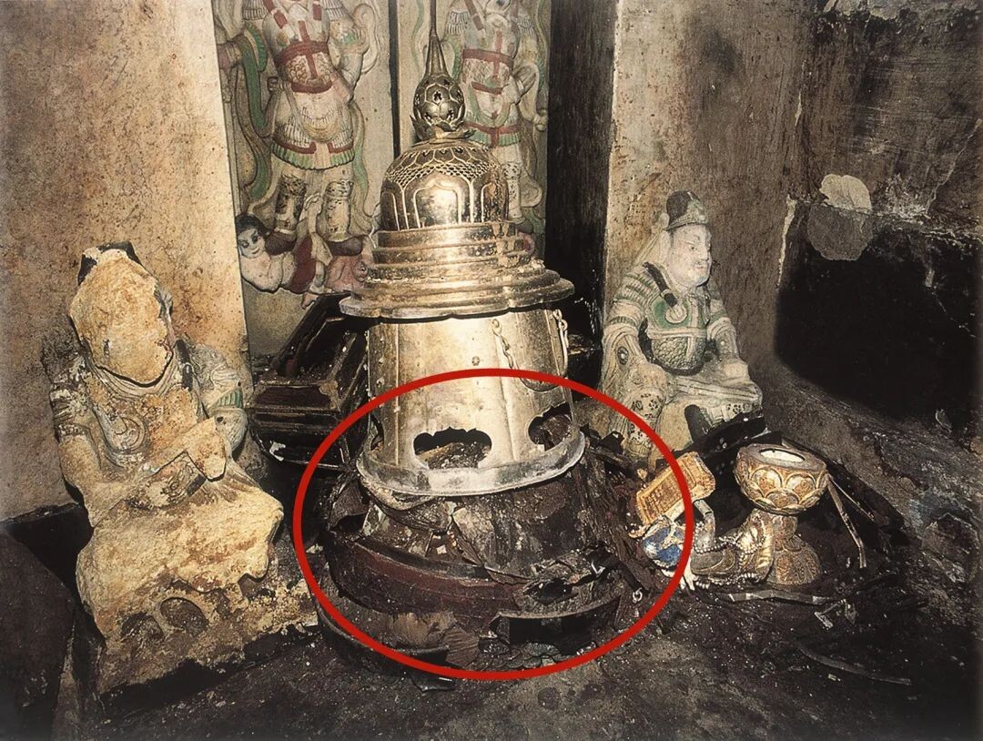 Внутри находились сотни предметов: золотая и серебряная посуда, драгоценная керамика, редкие исламские стеклянные изделия, шелковые ткани и резные изделия. Но самым важным открытием стала реликвия — кость пальца Будды.