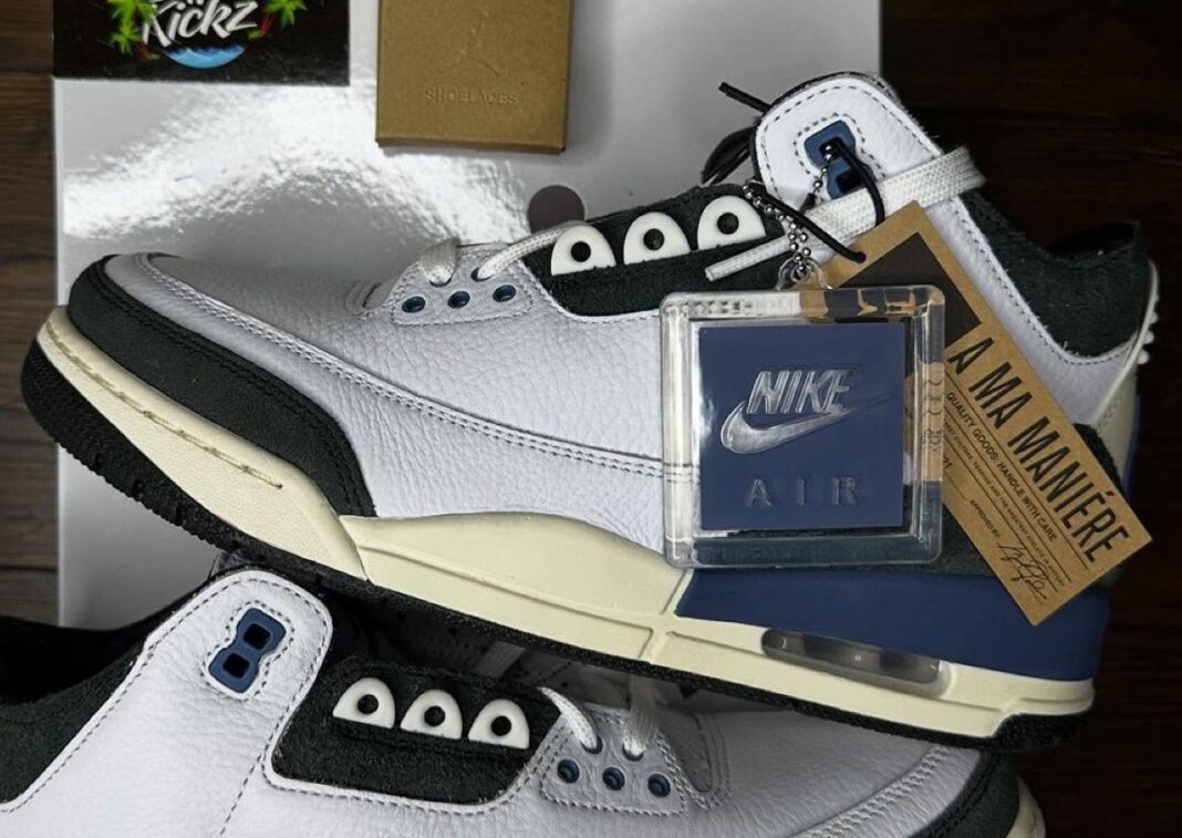 A Ma Maniere x Air Jordan 3 “Diffused Blue” представляет собой изысканный поворот классики, который выйдет в продажу весной 2025 года. Известная своим утонченным стилем, компания A Ma Maniére под руководством Джеймса Уитнера переосмыслила эту культовую модель, использовав первоклассные материалы и уникальные элементы, что привлекает как поклонников кроссовок, так и коллекционеров. В этой интерпретации A Ma Maniere x Air Jordan 3 сохраняется знаковый верх из белой кожаной фактуры, что позволяет сохранить классическую привлекательность силуэта, добавляя при этом современные акценты. Вместо традиционного рисунка "слона" на передней части и пятке используется гладкая замшевая отделка, придающая обуви чистый и респектабельный вид. Акценты в синем цвете радуют глаз на люверсах, задних ярлыках "Nike Air" и межподошве, подчеркивая монохромный дизайн. Логотип A Ma Maniére вышит на язычке — тонкий, но заметный элемент, который демонстрирует влияние бренда на это сотрудничество. Это премиум-сотр