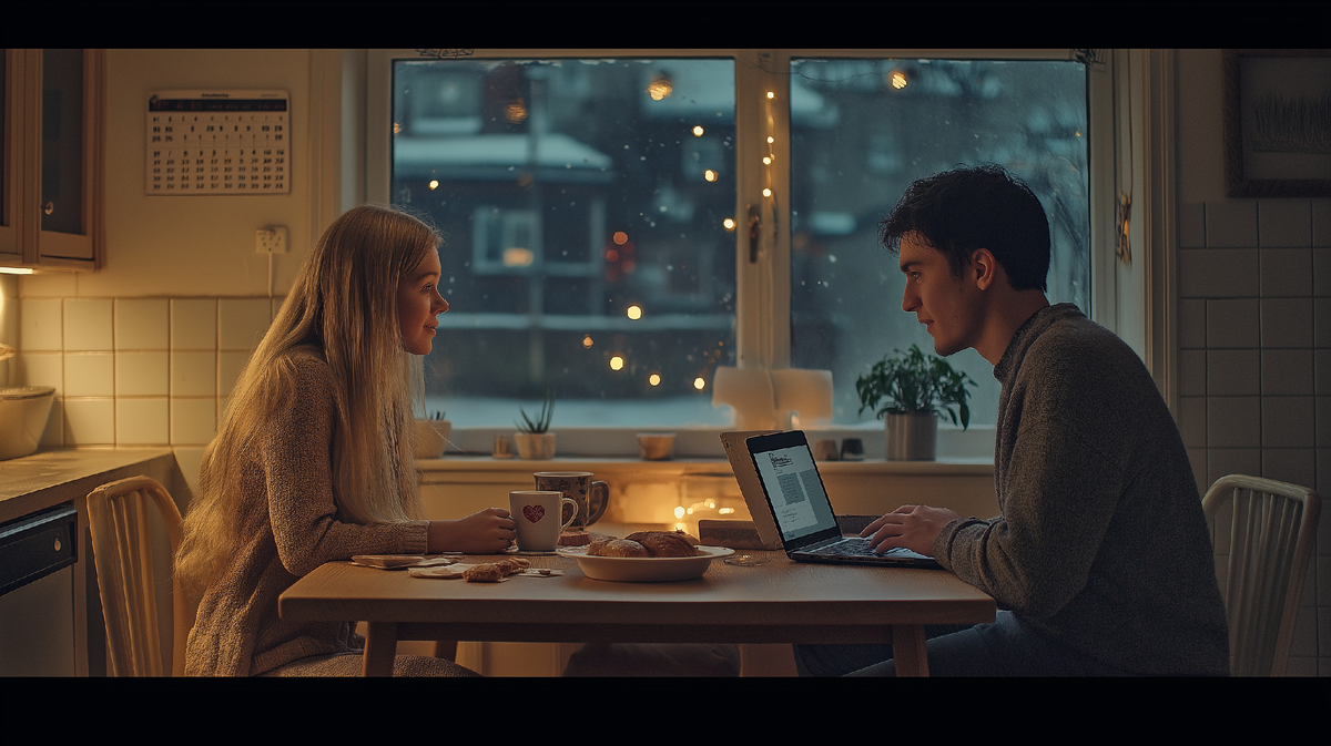 На следующий день Сергей вернулся домой поздно. Пальто было припорошено снегом, а лицо выглядело измождённым. Он медленно снял ботинки, стараясь не шуметь, но свет на кухне выдал, что Лена ждала его.