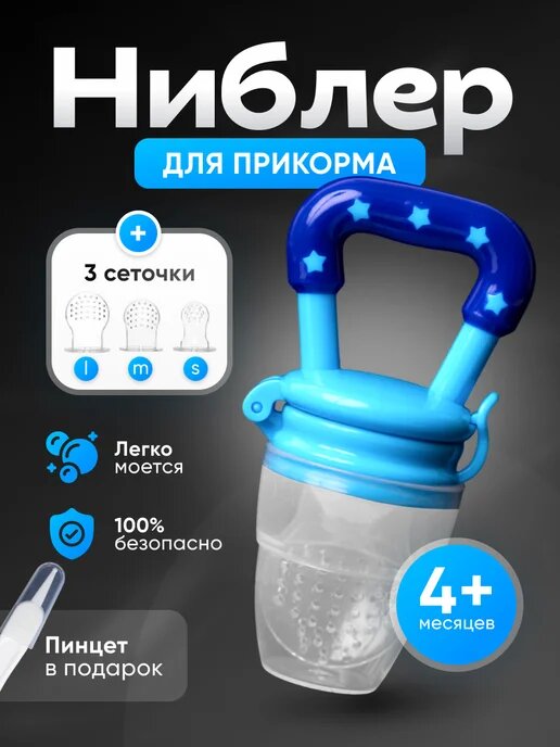 Детский силиконовый ниблер для прикорма - это настоящий подарок для мамы и малыша. Соска для кормления фруктами и овощами необходима, чтоб ваш ребенок мог есть без риска подавиться. Эта ложка для прикорма детская поможет открыть мир новых вкусов продуктов питания вашему малышу. Ниблер для прикорма (ложка) детский силиконовый. В наборе щеточка для десен от зуда и для чистки зубов, соска сеточка для фруктов разных размеров 3 штуки, ложка для кормления новорожденных малышей чувствительная к горячей температуре и контейнер для хранения. Ниблер для прикорма, Соска пустышка для питания малышей разных размеров 3 шт в наборе. Стерилизовать кипячением, материал не боится высоких температур. Колпачок защищает сеточку от загрязнения. Прорезыватель щетка на палец. Термо ложка силиконовая для прикорма
