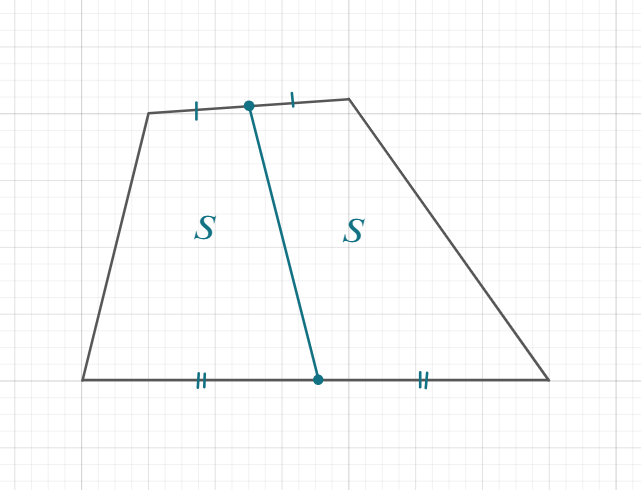 31. ★★☆ Отрезок, соединяющий середины противоположных сторон четырёхугольника, делит его площадь пополам. Докажите, что две стороны четырёхугольника параллельны 1. 2. 3.