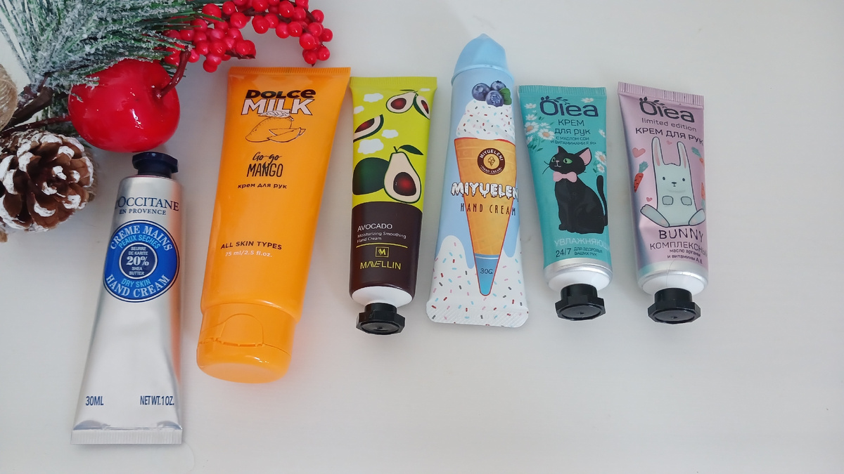 Продолжаю рассказывать о своих запасах косметики на 2025 год. Первая часть была об уходе за лицом и декоративной косметике, а сегодня речь пойдет об уходе за телом, руками-ногами, волосами и парфюме. Тут у меня вообще всего по минимуму. Просто потому, что если чего-то нет, то всегда можно заменить чем-то другим. Полностью взаимозаменяемы кремы для рук-ног-тела, например. И я сейчас стараюсь покупать все в больших упаковках: шампуни и маски для волос по 500-1000 мл. Такой маски хватает на год, держать в запасе еще одну банку целый год нет необходимости. Вот в этом случае я начинаю присматривать следующие тюбики, когда остается примерно 1/3 в банке или флаконе. в запасе только кремы для рук. Нет крема для ног, нет крема для тела. Моюсь я давно мылом, а мыло дома есть всегда 🤩 Кремов для рук в общей сложности 225 мл, не так уж и много. половина - это подарки, 2 крема Олеа и Дольче милк я сама покупала. Все тюбики по 30 мл, маленькие (кроме крема Манго, он 75 мл) Для ног крем закончил