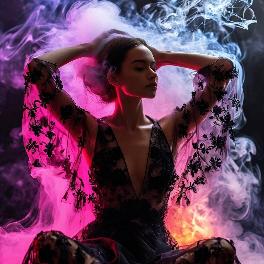 multiple exposure, from pink flame fire and smoke black flowers irises, neon white smoke, woman sitting, grace, aesthetics of female body, hands above head, side view, half turn, inner transparency, mysticism ---------- Первая картинка Шедеврум, вторая и третья ГигаЧат. Четвёртая Flux. Ну если честно, вполне на уровне Dall-E 3. Реализма пока не хватает, но тот же Шедеврум сначала был хуже. Будем пробовать дальше. А вам как? Напишите в комментариях! Тестировать тут: https://giga.chat/