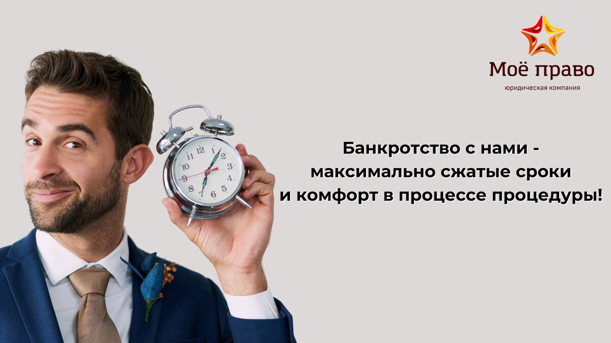С компанией "Моё право" процедура банкротства занимает в среднем 7-9 месяцев от момента бесплатной консультации до полного списания долгов!