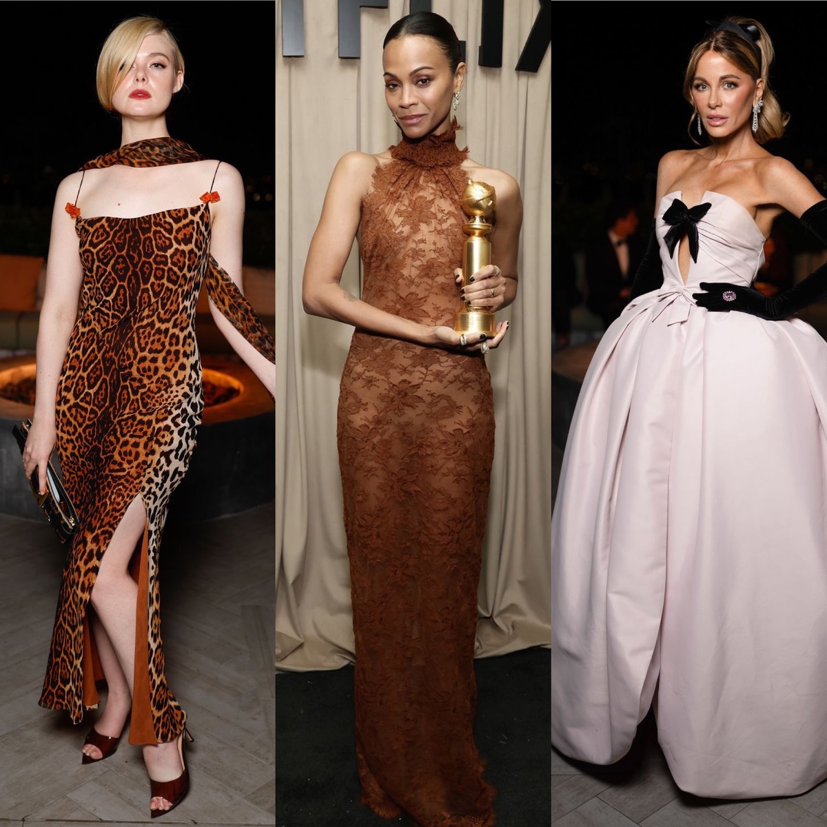 ЭЛЬ ФАННИНГ В «ЛЕОПАРДЕ», ЗОИ САЛДАНА В «КРУЖЕВЕ» — ЗВЁЗДНЫЕ ОБРАЗЫ НА AFTER-PARTY «ЗОЛОТОГО ГЛОБУСА 2025»