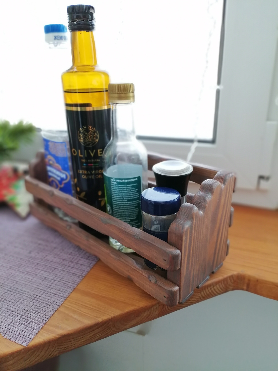 Ящичек изготовлен из сосны, покрыт маслом. Предназначен под бутылочки, баночки.