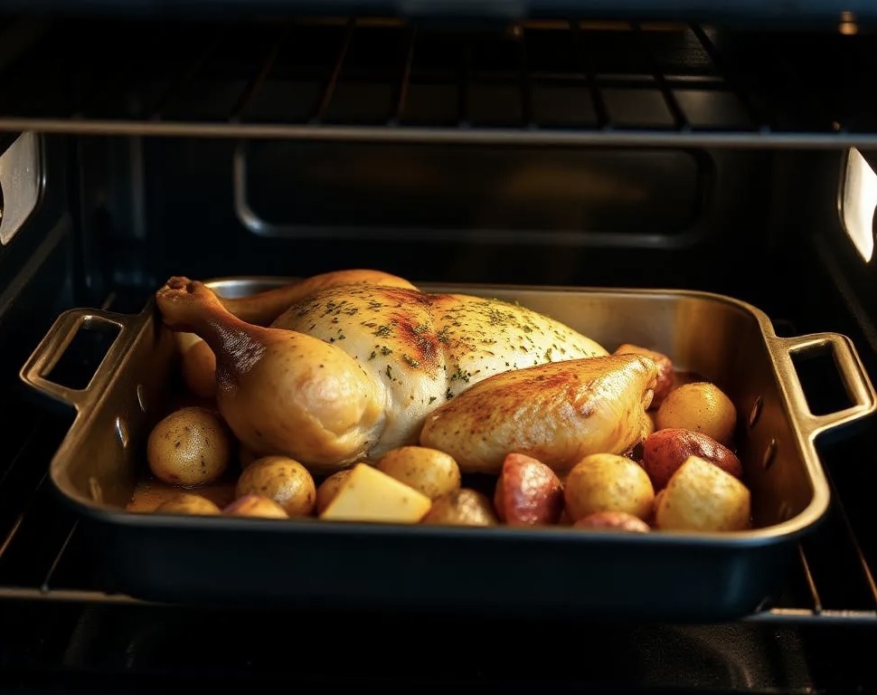 Идеальное блюдо для семейного ужина Предыстория Когда я впервые стал готовить для своей семьи, я искал рецепты, которые были бы простыми, доступными и нравились бы всем — от малышей до взрослых. Именно так родился этот рецепт. Запечённая курица с картошкой — это блюдо, которое неизменно собирает всю семью за одним столом. Оно ароматное, сытное и готовится без особых хлопот. Теперь я с гордостью делюсь этим рецептом с вами! Ингредиенты: • Куриные бедра или голени — 1 кг • Картофель — 1 кг • Репчатый лук — 1-2 шт. • Морковь — 1 шт. (по желанию) • Чеснок — 3-4 зубчика • Растительное масло — 3-4 ст. л. • Соль, перец, паприка, сушёные травы — по вкусу • Лавровый лист — 2-3 шт. Пошаговый рецепт: 1. Подготовка ингредиентов: • Очистите картофель, нарежьте крупными дольками. Лук нарежьте кольцами, морковь — кружочками, чеснок можно оставить целыми зубчиками. • Курицу тщательно вымойте, обсушите бумажным полотенцем. 2. Маринад для курицы: • В миске смешайте растительное масло,