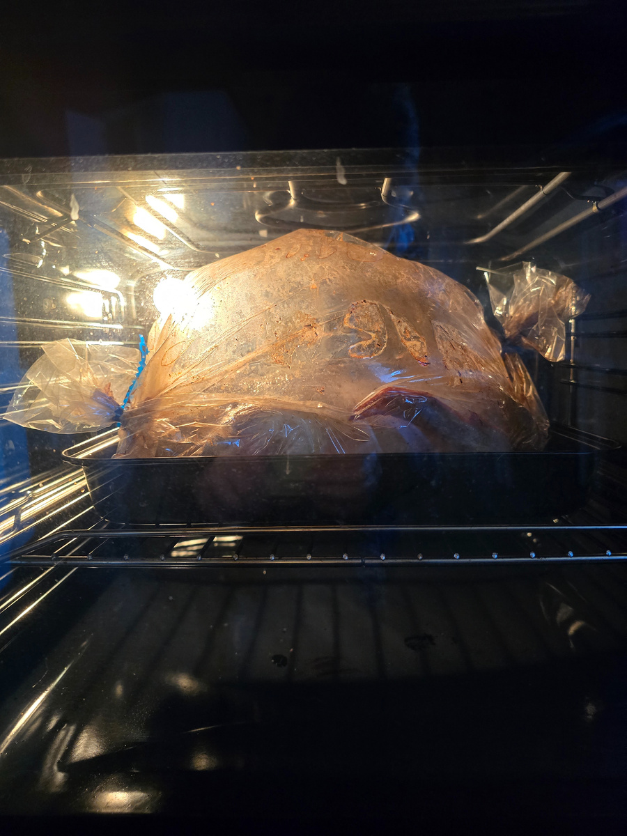 Друзья, приветствую. Не знаю у кого как, а у меня планировать - это сами знаете кого смешить. На сочельник я планировала примерно в обед отбыть из города на дачу. По приезду туда сунуть ужин, в виде замаринованного накануне гуся, в духовку и вечером после зажжения звезды, часов после 6, начать радоваться наступающему Рождеству. Но уже в обед я поняла, что планам сбыться не суждено. По некоторым причинам на дачу мы попадем непонятно когда (поздно значит) и запекать птицу времени точно не будет. Поэтому я просто по быстрому сделала салат оливье (мы его зимним называем) и с тазиком салата прибыли мы на дачу около 8 вечера. Салатом же и отужинали. Зато в рождественский день, я решила этого самого гуся засунуть в духовку с утра. Не сильно пораньше, но в 10 часов гусь уже там стоял. Получилось, что мариновался этот гусь у меня полтора дня. Кстати, мариновать эту птицу меня 3 года назад научила продавщица с рынка. Она тогда рекомендовала мне прямо в рукаве обмазать гуся соевым соусом, остав