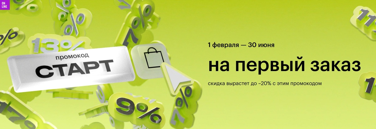 - Условия: на первый онлайн-заказ
