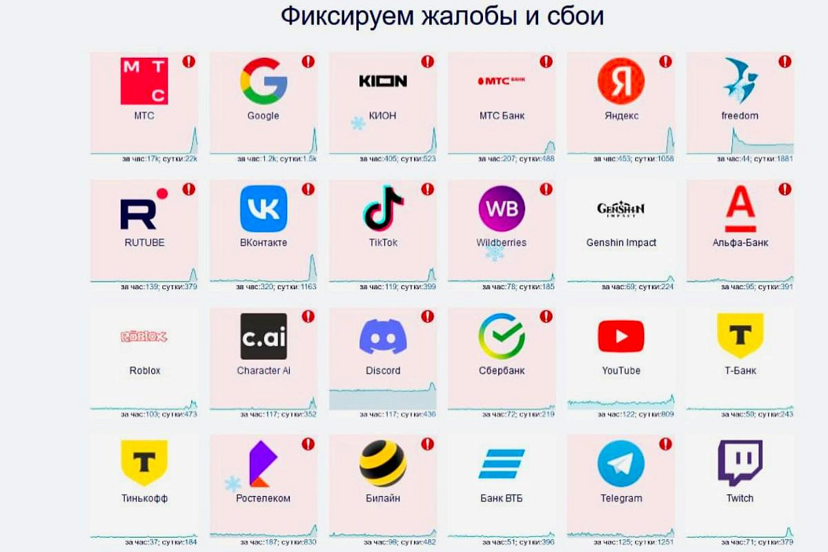 Массовый сбой в работе банков, операторов связи и интернет-сервисов в России 6 января в России произошёл масштабный сбой в работе банковских систем, операторов связи и интернет-сервисов. Сразу несколько крупных компаний зафиксировали жалобы на сбои от своих клиентов. По данным сервисов Downdetector и «Сбой.рф», больше всего жалоб поступило на работу оператора связи МТС — их количество превысило 29 тысяч.