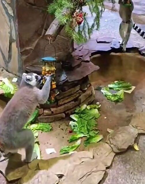 В зоопарке поздравили с Рождеством кошачьих лемуров
