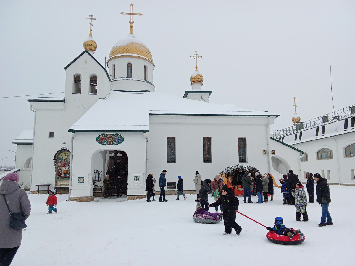 В полдень я отправилась в местную Троицкую церковь, чтобы почувствовать радость Рождества и поставить свечи В самом храме посетителей немного. Все чинно и таинственно После посещения храма я решила прогуляться по городскому саду. Все там в снегу и очень тихо. Посетителей нет совсем. Видомо все в этот день посещают ближайший храм на берегу канала В саду, как я уже сказала - ни души! Только я одна, как залетный гусь, прогуливаюсь по заснеженным тропам От снега очищены все аллеи Скучно и грустно стало почему-то... Дошла до концертной площадки и сразу отправилась на выход. До весны сюда дольше не приду На выходе обратила внимание на молодые елки, посаженные в огромные пластиковые вазоны. Начале декабря вазоны пустовали... По пути домой я зашла в Магнит. На многие колбасные изделия были скидки до 50%. Взяла парочку колбас Пихтовые "лапы", которые перед Новым годом продавали по 400 р отдают почти даром На ели в горшках тоже скидки На рынок зашла, а там - "сонное царство". Спрос нулевой и
