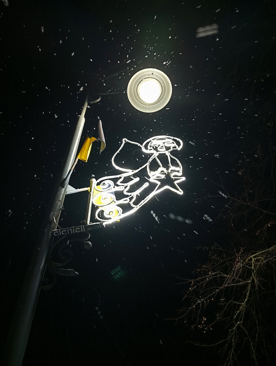 Зима — это волшебное время года, когда города преображаются и начинают светиться особенным теплом и уютом. Вечерняя прогулка по заснеженным улицам напоминает путешествие в сказку, тишину и праздничное настроение. Первая встреча — с ангелом. На фонарном столбе под мягким светом лампы мерцает рождественское украшение. Линии изогнуты так, что легко разглядеть фигуру ангела со звёздочкой. Казалось бы, он парит над снегом, возвещая о наступлении Рождества. В этот момент снежинки превращаются в сверкающие звезды, словно оживляя случайность и добавляя волшебства. Перед нами рождественский вертеп. Расположен он напротив готеля "7 дней". Это настоящий праздник сердца: уютный деревянный навес, украшенный светящимися гирляндами. Здесь можно увидеть фигуры волхвов, Марии, Иосифа, младенца Иисуса и животных. Снег тихо ложится на солому и забор, тёплый свет гирлянды словно согревает это место под открытым небом. Здесь как бы останавливается время, и каждый может прикоснуться к рождественскому чуду