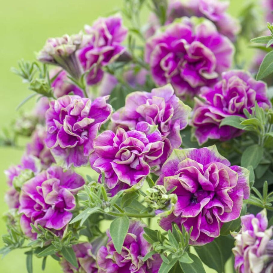 Относительно новый сорт ампельной петунии с уникальным эффектом, который обязательно привлечет ваше внимание. Крупные, яркие пурпурно-розовые, полностью махровые цветы с необычной лаймово-зеленой отделкой будут ниспадать каскадом в изобилии, создавая экстравагантную композицию в ваших контейнерах, подвесных корзинах и оконных ящиках в течение всего летнего сезона с июня по октябрь. Цветы также источают тонкий, но изысканный аромат, а это значит, что ваши композиции будут пахнуть так же хорошо, как и выглядеть, поскольку они падают и тянутся примерно до 70 см. Посадите возле дорожки, двери или зоны отдыха, где вы сможете в полной мере оценить как их очаровательные, винтажные цветы, так и аромат. Устойчивая к погодным условиям и выведенная специально для британского климата, эта петуния будет процветать независимо от погоды, будь то дождь или солнце. Выращивайте в хорошо дренированной почве на основе суглинка или песка, на открытом солнце или в небольшой полутени для наилучшего в