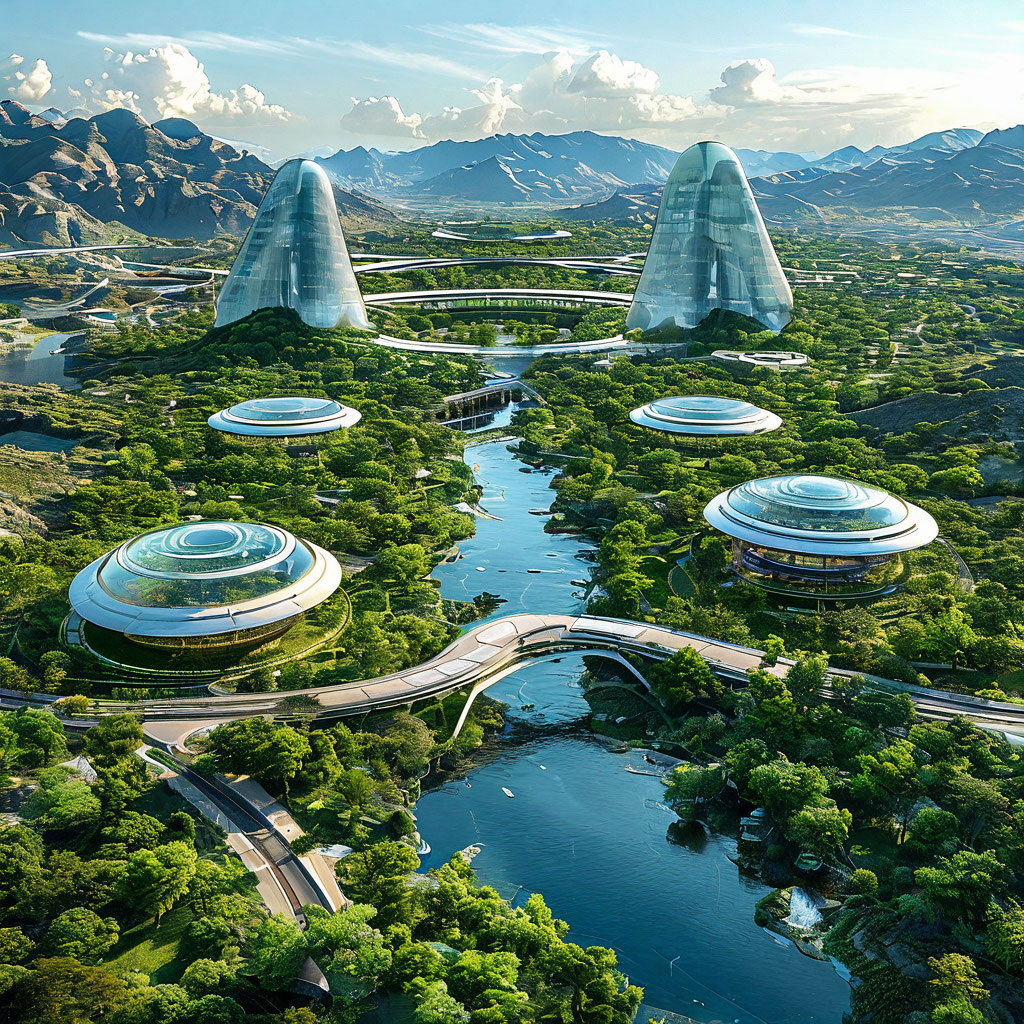 Города построены по принципам Жака Фреско: компактные, энергоэффективные, с минимальным воздействием на окружающую среду. Здания используют солнечную энергию, вертикальное озеленение и системы рециркуляции воды.
