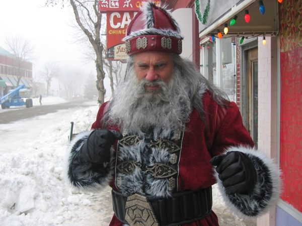 Пэр Ноэль, Мош Кречун и Юлнисаар достали приблуды. У первого был длинный охотничий нож, второй намотал на руку цепь, а третий ограничился тем, что взял со стола бутылку и, разбив её, сделал розочку. Оставшиеся на нашей стороне отпрянули. Санта-Христиан схватил стул, у Корбобо ничего не было кроме удочки, а китайские и монгольские товарищи приняли боевые стойки. Но всё закончилось быстро - вперёд смело выбежал седобородый дед в синем, и принялся со скоростью лесного пожара утюжить негодяев. Во все стороны летели вставные челюсти, очки и клочья седых накладных и не очень, волос.