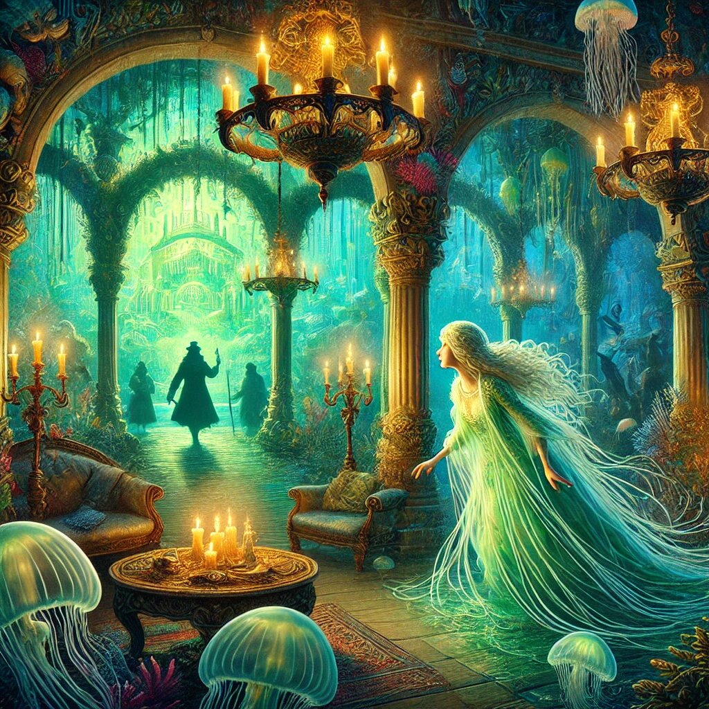 Стрелой метнулась во дворец. Уже на месте обернулась медузой и аккуратно просочилась через решетку. Медуза — один из самых безопасных обликов под водой. Никто не заподозрит, что это я колыхаюсь, почти не двигаясь, в зале, где совещаются важнейшие лица города. Причём не просто так колыхаюсь, а по делу.