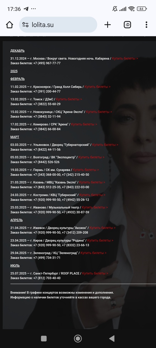 21 апреля 2025г. в 19:00 в ДК Аксион, расположенном по адресу: Удмуртская Республика, Ижевск, улица Максима Горького, 92 запланированы концерты певицы "Лолита"(настоящее имя – Лолита Марковна Милявская, гражданка Израиля)Считаю невозможными выступления этой артистки в России после ее участия в так называемой «голой вечеринке» проведенной Анастасией Ивлевой во время СВО. В государственной думе неоднократно звучали призывы к тому, чтобы наказать участников этого бесчинства. Спикер государственной думы Володин Вячеслав Викторович подчеркнул, что российское общество не согласна с игнорированием и перечёркиванием его ценностей. По его мнению, в подобных случаях будет правильно, чтобы "все реагировали и защищали страну", а также после публикации в сети Интернет ее высказываний, в частности, речь идёт о сделанной записи на украинской передаче "Мир сегодня", которая вышла на канале "1+1", где Л.М. Милявская говорит о "клятых москалях" следующее: "Вороги ...А шо москали? Их треба потреблять, ш
