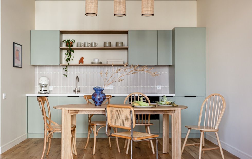 Яркая уютная двушка 80 м² с элементами джапанди и mid-century