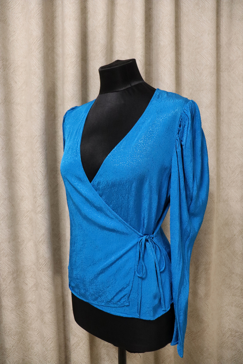 Шикарная блузка с длинным объемным рукавом, выполнена из 100% переливающейся вискозы. Очень красиво садится по фигуре, на спинке есть вытачки для идеальной посадки по талии. Блузка на завязках.