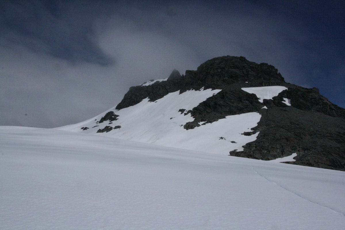 Видимость - 0. Метров 50–100, не больше. На перевал мы вскарабкались и даже без серьезных срывов. Но так страшно мне не было давно. Особенно, когда я попытался перейти полуметровую трещину по 10 сантиметровому ледяному "ножу". Нога соскользнула, но я сумел сесть на "нож" верхом, а не улетел вниз в 40 метровую трещину. Переполз потихоньку. Ледник на репевале розломился, мы на нижнем краю, верхний метра на два выше и между нами и этой стеной сорокаметровая трещина и 10 сантиметровая "приступочка" вдоль стены. И хрен его знает, к чему эта "приступочка" "прикреплена". Все бы ничего, но нас двое. Если один сорвется... лучше не срываться. И все время очень жесткая страховка. Даже пол-метра провиса веревки вызовет такой рывок, что будет не удержать.