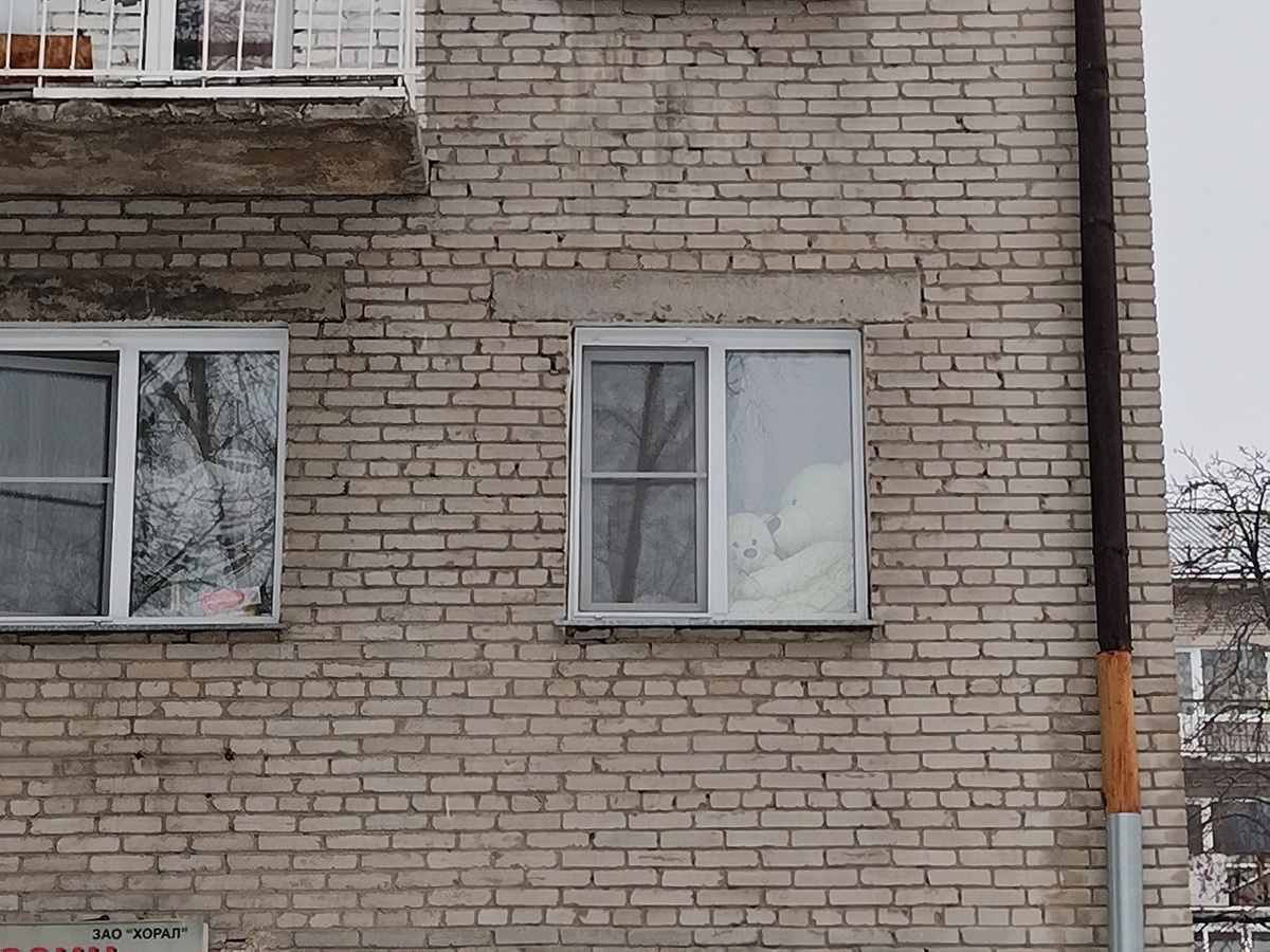 Этих прекрасных мишек я встретил где-то в глубине Станиславского микрорайона Новосибирска.