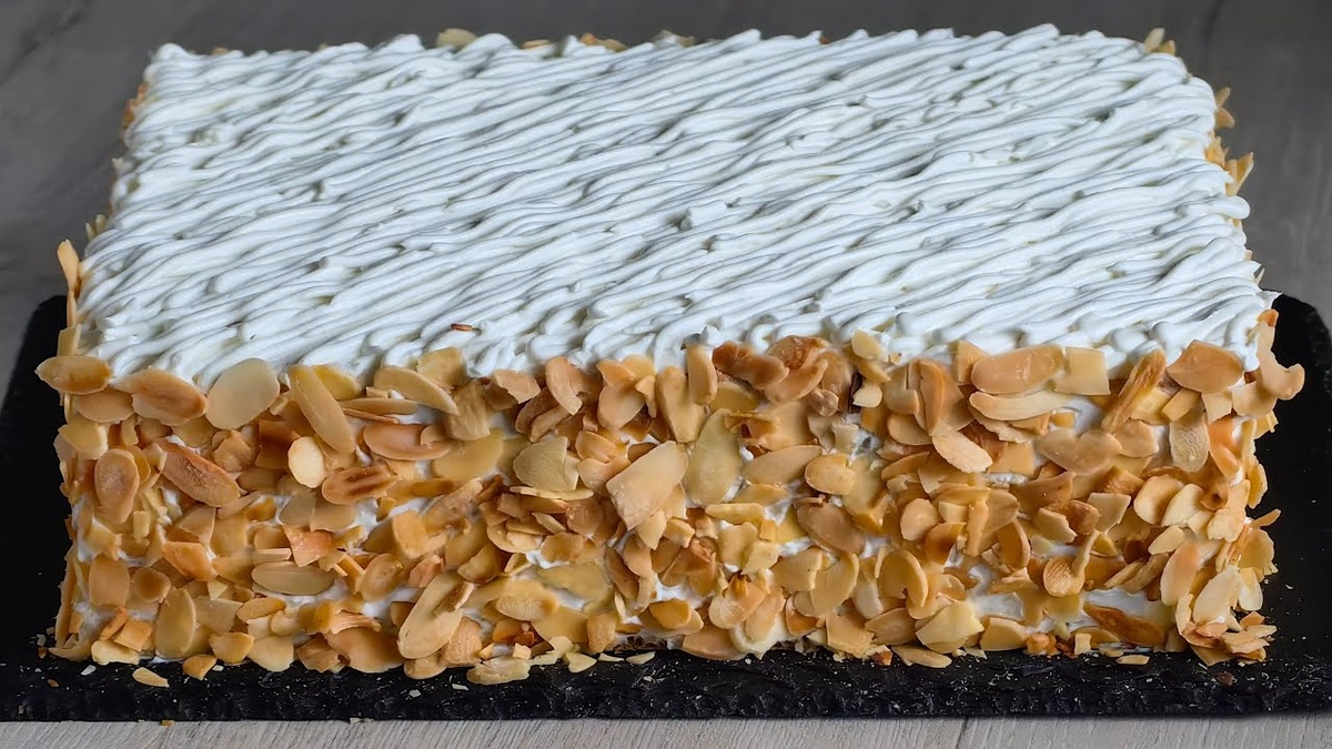 Я использую: В глубокую миску вбиваем 2 яйца, всыпаем щепотку соли, 75 грамм сахара и взбиваем миксером до однородной массы. Не прекращая взбивать , вливаем 500 миллилитров кефира 2,5% и перемешиваем до однородности. В полученную массу просеиваем в два этапа 400 грамм муки и замешиваем тесто. В полученное липкое тесто, вливаем 30 грамм растопленного, сливочного масла и перемешиваем миксером до однородности. Снимаем цедру с 1 лимона и добавляем в тесто, всыпаем 1 чайную ложку соды и вливаем 1 столовую ложку лимонного сока, снова перемешиваем миксером и тесто готово. Нам понадобится форма 26 на 36 сантиметров (я воспользовалась прямоугольной раздвижной формой, предварительно обмотав её фольгой и пергаментной бумагой). Вливаем полученное тесто в форму и распределяем по всей форме при помощи лопатки. Отправляем в разогретую духовку до 180° и выпекаем 15 минут. Лопаткой проходится по бокам формы и извлекаем бисквит. Ровно отрезаем края и делим корж на 2 равные части. И ка