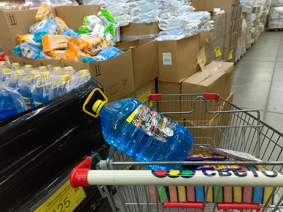 После праздников, в "Светофоре" начался завоз, как хорошо забытых старых товаров, так и новых. Конечно новинок пока не очень много, но прогуливаясь между рядов магазина, иногда натыкаюсь и на, что-то интересное. И в этом обзоре, делюсь с вами увиденным в "Светофоре" города Абинск. Универсальная автомобильная жидкость синего цвета для бачка омывателя до -30 градусов, в пластиковой бутылке 4,5 литра. Цена 126 рублей. Чистящее средство 10 в 1 от налёта и ржавчины объёмом 750 мл, которое применяется на кухне, в ванне и туалете. Цена 87 рублей. Интерьерный стул с удобной спинкой из плотного пластика, с нагрузкой до 120 кг. Цена 1350 рублей. Прозрачный контейнер с крышкой для сыпучих продуктов, объёмом 1,4 литра. Цена 52 рубля. В соседнем магазине цена на 50% выше. Мягкие и удобные домашние тапочки для мужчин и женщин, есть белого и серого цвета размеры 37-46. Цена 300 рублей. Небольшой ковёр с рисунками на разную тематику, размером 1,5х1 метра. В наличии большой выбор для детской комнаты. Ц