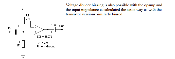 Поэтому нам (если шум всё-таки хотим уменьшить) придется вернуться к более простой схеме буфера, когда есть внешний формирователь опорного напряжения (например такой же, как в OCD) и к нему подключается буфер (который мы уже видели в прошлой статье)