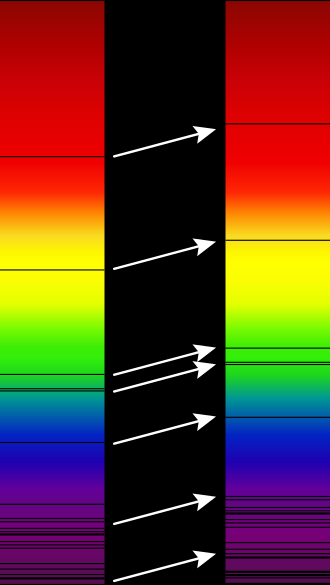 Если внимательно смотреть на изображение, то легко заметить, что сам спектр не изменился, а сменили местоположение черные линии. Что это за линии?