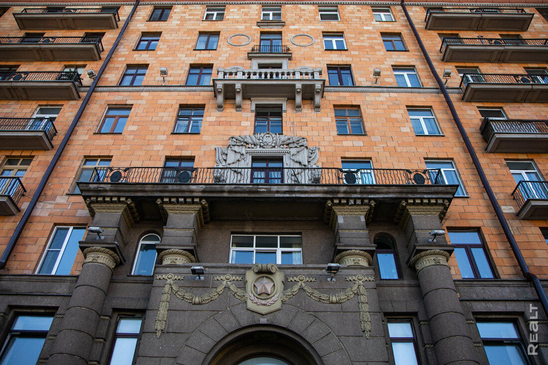В большей части сталинок в центре Минска, как правило, жили чиновники, офицеры, артисты, ученые и герои труда. Для заводчан же возводили жилье попроще: без шикарных балконов, лепнины на фасаде, да и не на главном проспекте. Как оказалось, везде есть исключения. По официальным данным, узнаваемый всеми 8-этажный дом на Красной, 22 строили для работников завода «Ударник».