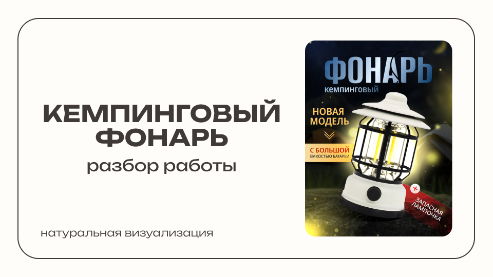 Кемпинговый фонарь / Инфографика для маркетплейсов / Дизайн карточки товара для туризма и активного отдыха / Разбор работы