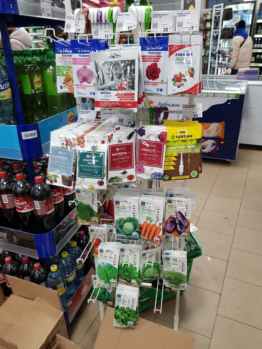 Цена 19 руб.60 коп. Выбор, как всегда, небольшой: укроп, петрушка, томат Белый налив, огурцы (один сорт, на фото не видно какой), капуста, баклажаны, морковь, салат Кучерявец одесский.