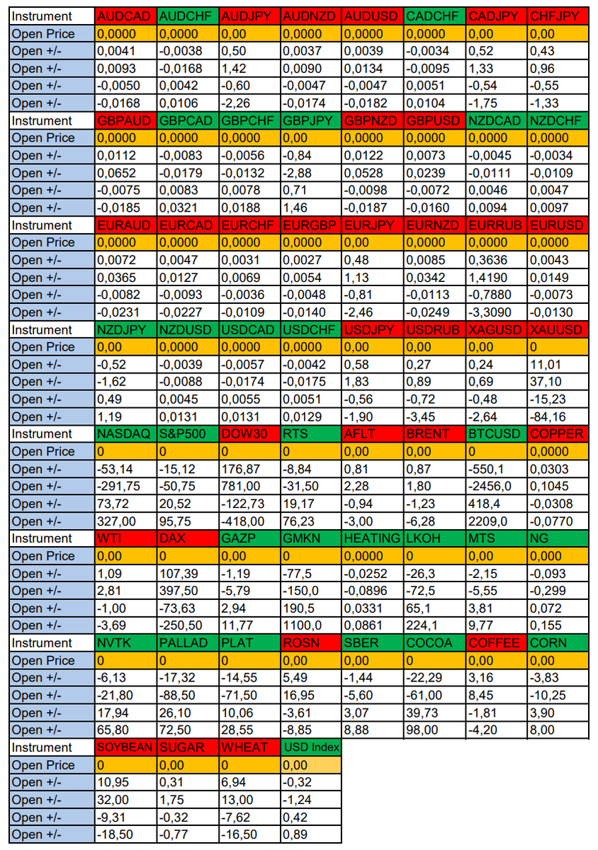 Здравствуйте Уважаемые трейдеры! Александр Борских подготовил для Вас свежую информацию. Очередные сезонные тенденции на Среду 08 Января 2025 по основным мажорам финансовых рынков. Весь перечень анализируемых активов указан ниже в общем количестве 60 инструментов. Здесь Вы найдете активы рынка Форекс, популярные активы Московской биржи, не менее популярные активы Чикагской биржи СМЕ и мажор криптовалютного сегмента - Биткоин, за которым следуют все альткоины. Первый блок информации с зонами лимитных покупок и продаж. Данная информация включает в себя не только статистический показатель волатильности каждого актива, но и ближайшие опционные страйки с учетом премий за риск (Для верных расчетов рекомендуется просмотреть теоретическое видео в свободном доступе - Как использовать блок сезонности). А теперь сам блок информации №1: Второй блок информации с направленным вектором движения и вероятностями (внимательно обращаем внимание на цену открытия каждого актива. Обязательно для верных расч