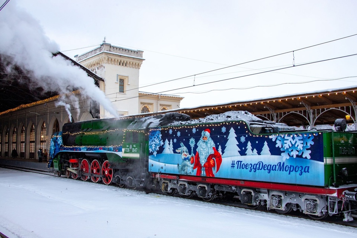 Красиво украшенный состав, который представляет собой передвижную резиденцию волшебника, совершающую остановки по России, от западных до восточных окраин. Как правило, поезд прибывает в города с классическим паровозом, в том числе П-36, максимально быстрым и надежным. Сам поезд Деда Мороза выглядит эффектно, снаружи он расписан зимними пейзажами, а в состав входят приемная Деда Мороза, "Сказочная деревня" для интерактивных игр, вагон-сцена, вагон-кукольный театр, вагон-лавка с новогодними сувенирами и вагон-ресторан. Путешествует Дед Мороз вместе с многочисленными помощниками, и у них тоже имеются свои вагоны. В течение последних трех лет поезд посетил более 170 городов России, а в конце 2024-го и начале 2025 года его путешествие займет 54 дня. За это время состав преодолеет почти 30 000 км, сделав остановки в 64 населенных пунктах. Поездка стартовала 19 ноября на станции Тайшет в Иркутской области, после чего Дед Мороз проедет вдоль всей Байкало-Амурской магистрали, о