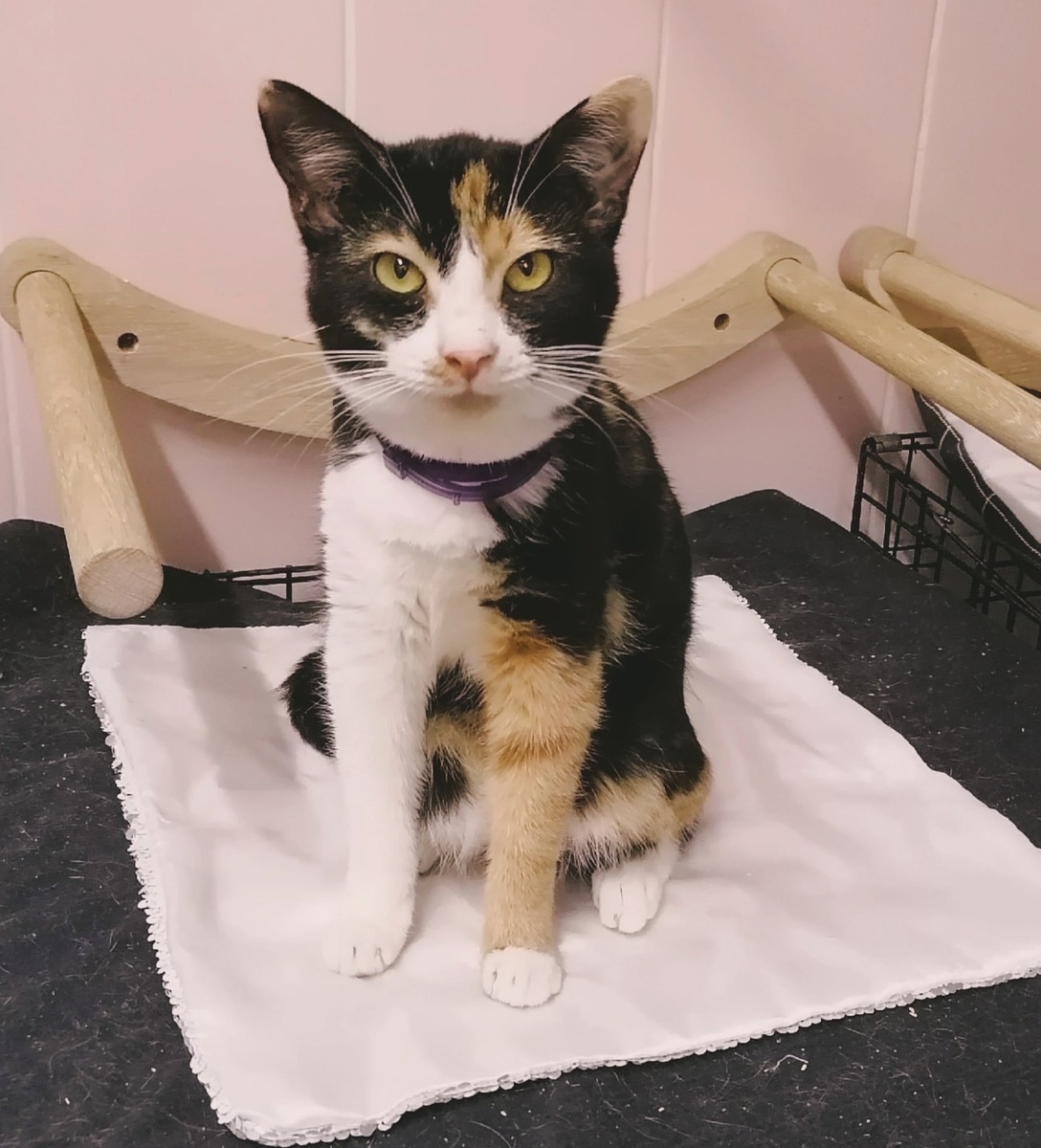 Но сейчас она подросла и переехала в приют. Малышке примерно 7-8 месяцев. Немного пуглива, что понятно. Девочка очень красивая, как будто одета в дизайнерский комбинезончик😀. А ведь все знают, что кошечки цвета калико приносят счастье. Если вы этого не знали, то обязательно прочитайте нашу статью.