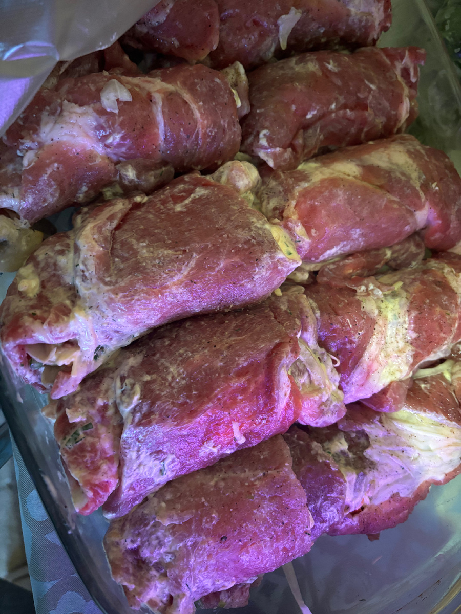 Готовитесь к праздничному столу и хотите удивить гостей чем-то по-настоящему вкусным и эффектным? Тогда этот рецепт сочных и нежных свиных рулетиков – именно то, что вам нужно! Это блюдо покорит вас своей простотой приготовления и невероятным вкусом, который будет радовать вас и ваших близких долгие годы. Поверьте, ваши гости будут просить добавки! Что нам понадобится: * Свинина (шея): Около 2 кг. Шея – идеальный вариант для рулетиков благодаря своей мягкости и сочности. можно заменить на любое мясо и любую часть. * Маринад: * Соль – по вкусу (примерно 1-1,5 чайной ложки) * Черный молотый перец – по вкусу (примерно 0,5 чайной ложки) * Холодная вода – 1 стакан ( для сочности ) * Начинка: * Помидор – 4-5 шт. (среднего размера, нарезаем кубиками) * Твердый сыр – 100-150 г (натираем на крупной терке) * Зелень (укроп, петрушка) – по вкусу, мелко рубим * Чеснок – 2-3 зубчика (мелко рубим или пропускаем через пресс) * Майонез – 2-3 столовые ложки * Горч