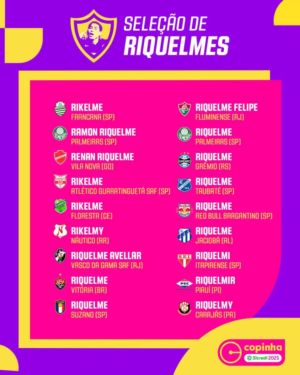 Поколение-2006. Январь в Бразилии – время Копиньи. На молодежный кубок штата Сан-Паулу со всей страны съезжаются талантливые ребята 17-20 лет. На турнир приехали сразу 18 игроков по имени Рикельме или его производными – например, Рикельмир или Рикельми. В «Палмейрасе» таких сразу двое. И да, их действительно всех назвали в честь Хуана Романа Рикельме – аргентинца, который никогда не играл за бразильские клубы. Рикельме обожают в Бразилии. В честь него назвали больше детей, чем в честь Роналдо На феномен «поколения Рикельме» обратили внимание на Копинье-2020 – тогда на турнир приехали 12 игроков с именем в честь аргентинской десятки. Был даже Аймар Рикельме! Уже тогда пытались разобраться, почему вообще бразильцы называют детей в честь заклятого соперника. Оказалось, дело в искреннем восхищении. В начале 2000-х «Бока Хуниорс» была главной силой Южной Америки – взяли три Кубка Либертадорес за четыре года, Рикельме приложил ногу к двум из них. Естественно, в соперниках были бразильские кл