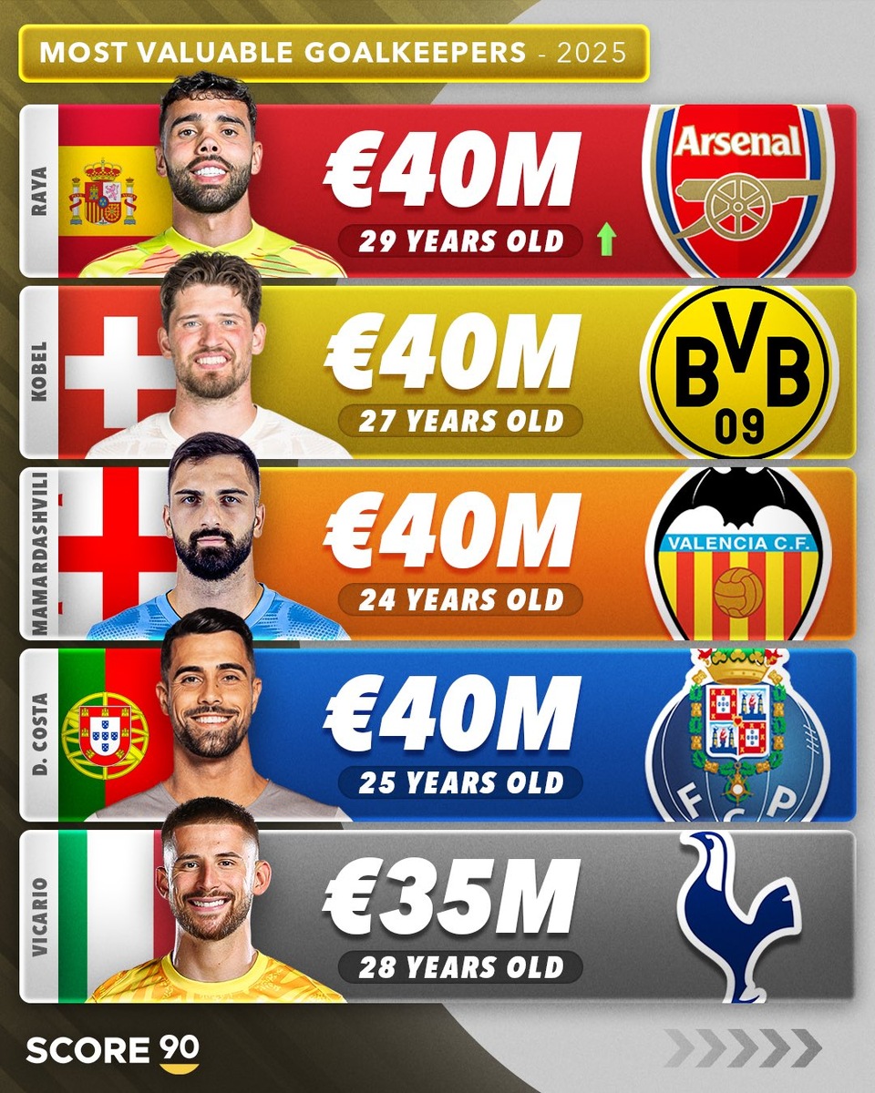 В современном футболе значимость вратаря трудно переоценить. Нападающие становятся быстрее, техничнее. Выиграть трофей даже со средним вратарем в таком низкорезультативном виде спорта – трудная задача. Однако новое поколение голкиперов не так высоко ценится на рынке. Вот пять самых дорогих вратарей в 2025-м по версии Transfermarkt. Самые дорогие покупки вратарей в истории Футбольный мир привык к трансферам вратарей за баснословные суммы. Эти сделки вошли в историю как самые громкие и значимые: Кепа Аррисабалага – 80 млн евро В 2018 году «Челси» установил рекорд, заплатив за Кепу безумную сумму. Похоже, такую сделку никто не перебьет в ближайшие годы. Алисон Бекер – 62,5 млн евро Трансфер бразильца в «Ливерпуль» стал ключевым моментом для клуба. Алисон несколько лет оставался гарантом надежности и помог «Ливерпулю» завоевать Лигу чемпионов и АПЛ. Джанлуиджи Буффон – 52 млн евро Сумма, которую «Ювентус» заплатил за Буффона в 2001 году, оставалась рекордной на протяжении больше 10 лет. Ег