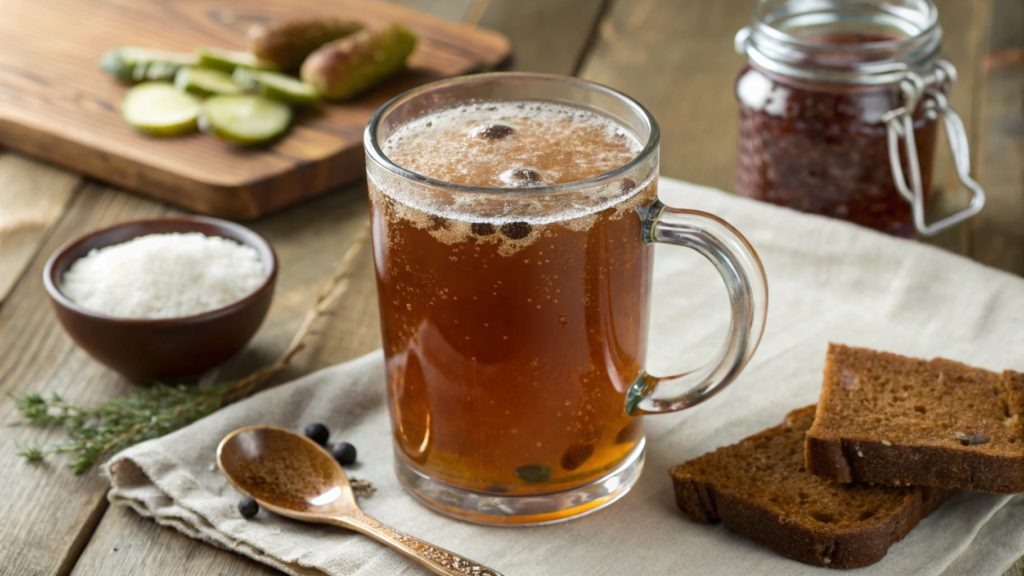 Домашний квас — это не просто напиток, а часть русской культуры. Его исторические корни уходят вглубь веков, и он всегда был популярен как освежающий и полезный напиток, способный утолить жажду в жаркие дни. В этом рецепте мы расскажем, как приготовить домашний квас, обладающий насыщенным вкусом и освежающим ароматом. Если хотите более сладкий квас, увеличьте количество сахара.Для необычного вкуса добавьте в настойку небольшое количество мяты или лимона.Храните квас в холодильнике, чтобы предотвратить избыточное брожение. Общее время приготовления: 1 день и 12-24 часа на ферментацию. Данный рецепт рассчитан на 10 порций. Квас содержит примерно: Для домашнего кваса лучше всего подходит ржаной хлеб, так как он придаёт напитку насыщенный вкус и характерную кислинку: Смесь чёрного и белого хлеба также может дать интересный вкус. Время брожения кваса зависит от температуры окружающей среды: После брожения квас нужно процедить и убрать в холодильник для охлаждения. Для брожения можно использ