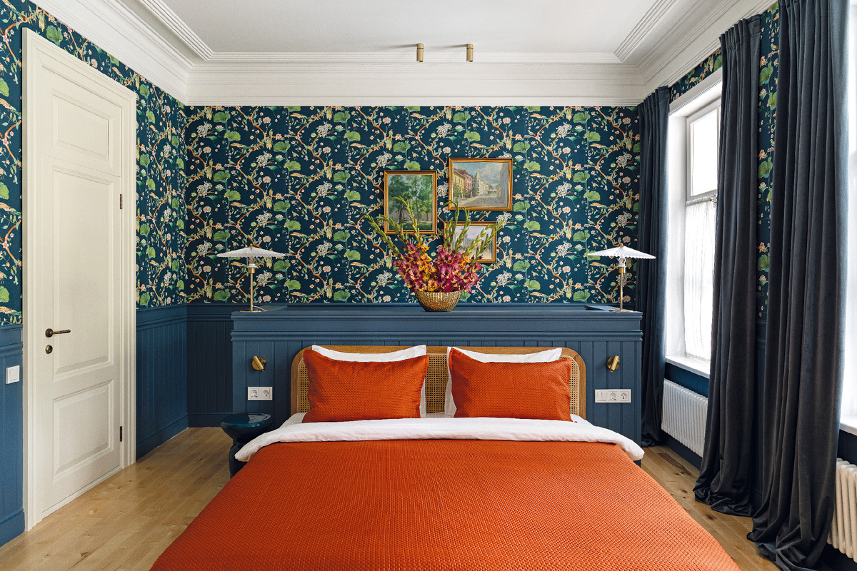 Задача перед дизайнером Аделиной Шараповой стояла непростая: оформить объект культурного наследия под отель, сохранив айдентику особняка, чтобы гости, проживающие в нем, могли почувствовать связь с историей. Двухэтажный дом был построен в 1852 году для дворянина, титулярного советника Порфирия Сомова по проекту архитектора Бориса Иванова. В 2018 году он получил статус объекта культурного наследия регионального значения, а в феврале этого года к нам обратился заказчик с просьбой оформить его под отель. Собственник здания Дамир Исмагилов подключил к работе команду 1010 Hospitality, которая занимается запуском и управлением отелей и апартаментов, а я разработала концепцию и дизайн интерьера. Отель получил название в честь своего первого владельца. Всего в «Сомове» восемь номеров, и каждому из них присвоены имена исторических личностей, так или иначе связанных с районом, в котором находится здание. Самый сложный и интересный, на мой взгляд, — это номер Сомова. В его комнате сохранилась печ