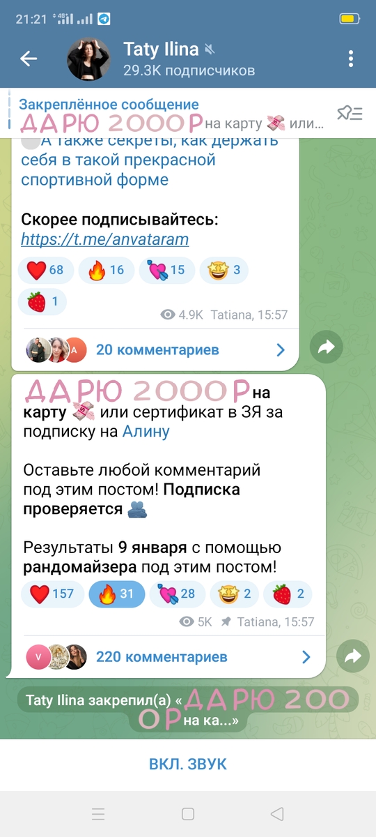 - сумма розыгрыша. В данном случае сумма крупная, на моем маленьком канале, где реклама стоит 500 руб., за эту сумму актив точно был бы больше 300+. Если бы в данном случае сумма была, например, 300 руб., мы понимаем, что причина низкого актива может быть и в сумме;