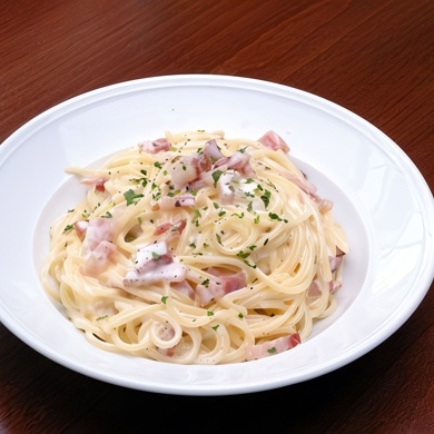 Ингредиенты (на 2 порции): 200 г пасты (спагетти или феттучини) 100 г панчетты или гуанчале (можно заменить беконом) 2 крупных яйца 50 г пармезана (тертого) 50 г грюйера или пекорино (по желанию) Соль и черный перец по вкусу Оливковое масло (по желанию) Приготовление: Подготовка ингредиентов: Нарежьте панчетту/бекон кубиками. В отдельной миске взбейте яйца, добавьте тертый пармезан и щепотку черного перца. Хорошо перемешайте. Варка пасты: Вскипятите воду в большой кастрюле. Добавьте щедрую щепотку соли. Положите пасту и варите согласно инструкции (обычно 8-10 минут) до состояния «аль денте». Не забудьте сохранить 1/2 стакана воды от варки. Приготовление соуса: В большой сковороде на среднем огне разогрейте немного оливкового масла (если используете). Добавьте нарезанную панчетту/бекон. Обжаривайте до золотистой корочки и хрусткости (около 5-7 минут). Смешивание пасты и соуса: Когда паста готова, слейте воду, оставив немного жидкости. Переложите пасту в сковороду с панчеттой и хорошо п