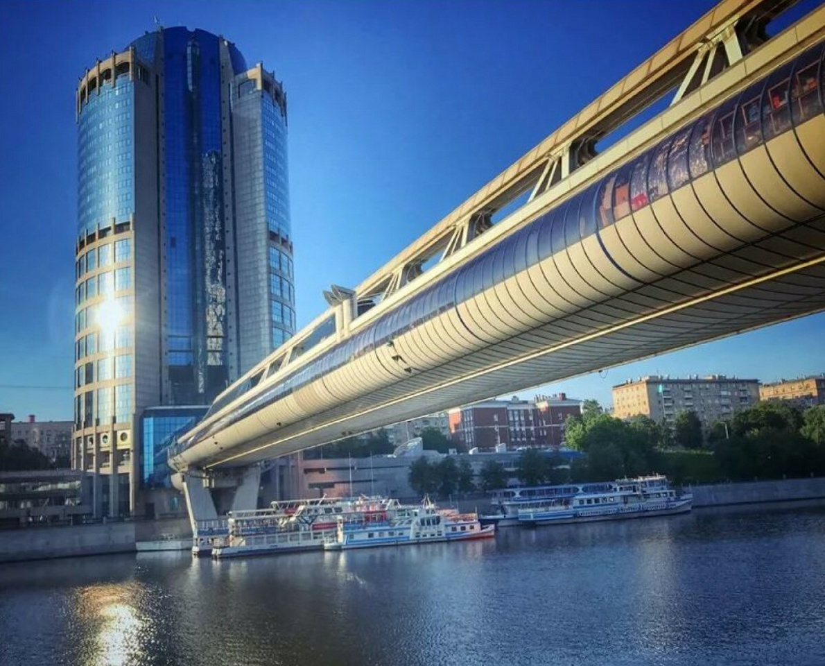 4. Красивые виды. Мост Багратион предоставляет отличные виды на реку Москву, а также на близлежащие районы. Вечером мост красиво освещается, и его освещенная структура выглядит особенно эффектно на фоне ночной столицы.