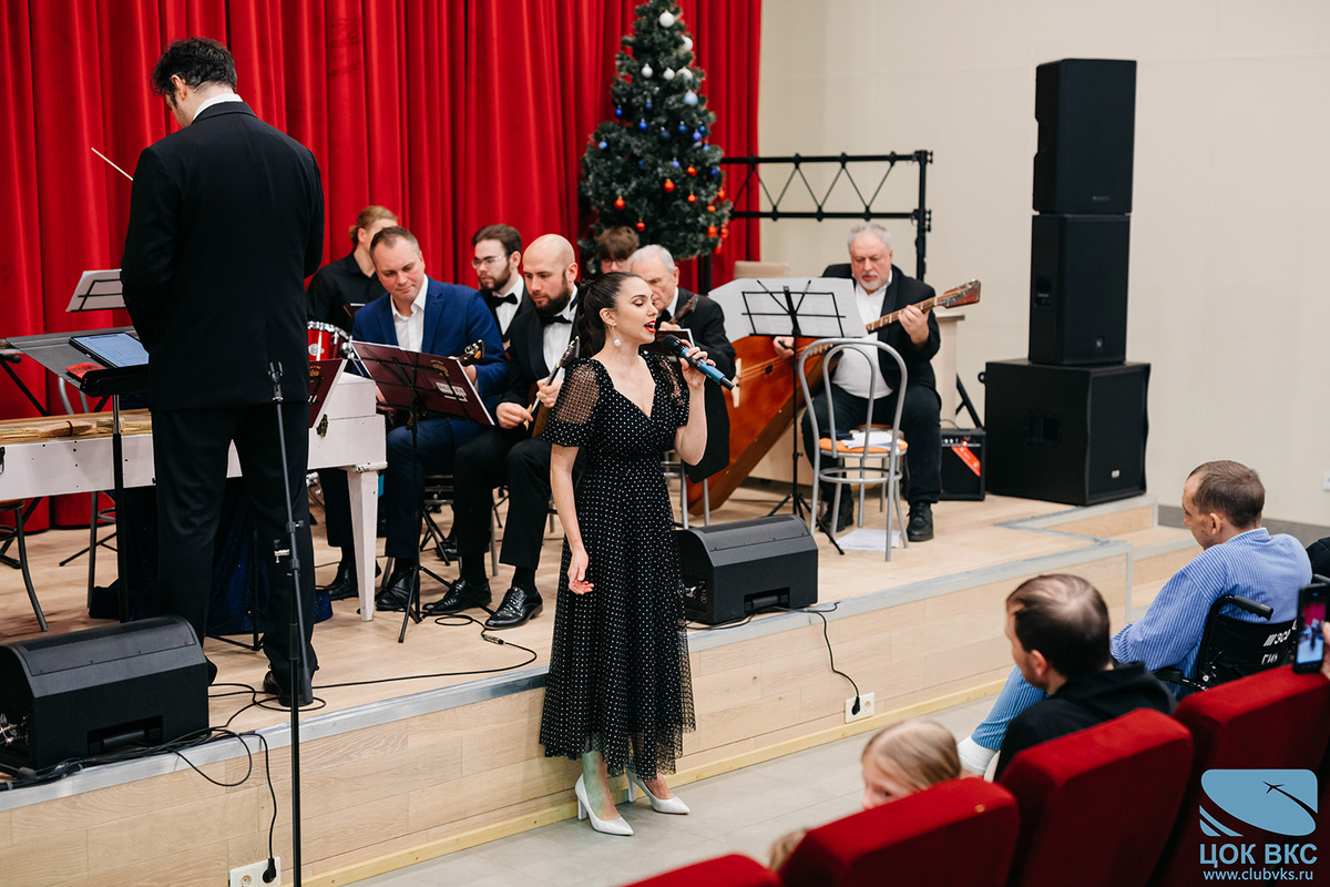 06.01.2025 г. Сотрудники методического кабинета (культурно-досуговой работы) ЦОК ВКС организовали и провели концертную программу "Рождественская надежда", посвященную празднованию Нового года и Рождества в военном госпитале для военнослужащих, находящихся на излечении. На мероприятии присутствовали участники специальной военной операции. Перед военнослужащими выступили талантливые артисты Академического оркестра русских народных инструментов Радио и Телевидения при АНО "РАНТ", дирижёр, лауреат всероссийских и международных конкурсов, член союза композиторов Москвы и союза композиторов России, Павел Алексеев. Основу концерта, состоявшегося в актовом зале госпиталя, составили близкие каждому сердцу народные мотивы, добрые советские хиты и пронзительные современные композиции. Ведущей праздничного концерта в образе Снегурочки выступила руководитель клубного формирования «Высота» (при ЦОК ВКС) Анастасия Голованова. Зрители высоко оценили исполнительское мастерство артистов, награждая кажды